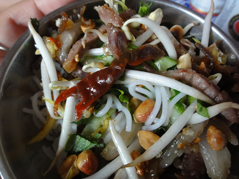 Our next stop was Ms. Lieu's brother's place. Time for more food. This time we were eating mắm công, fish sauce with crab over vermicelli noodles with pork, herbs, sprouts, and peanuts. It was delicious.